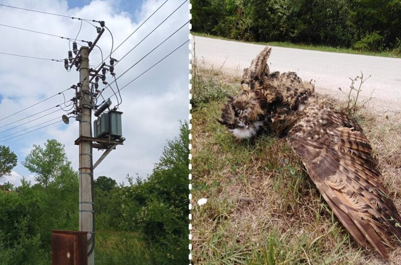Ptice stradaju od strujnog udara uglavnom na nisko i srednjenaponskim stubovima (10, 20 i 35 kV), a od sudara mogu stradati i na visokonaponskim (110, 220 i 400 kV). Među nisko i srednjenaponskim stubovima, posebno su opasni takozvani zatezni i oni koji na sebi imaju trafoe.